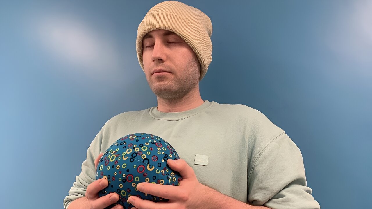 Алекс Фаррал, студент факультета компьютерных наук в Университете Бата (Великобритания), изобрел мягкий мяч, который сжимается и расширяется синхронно с вдохами и выдохами человека.
