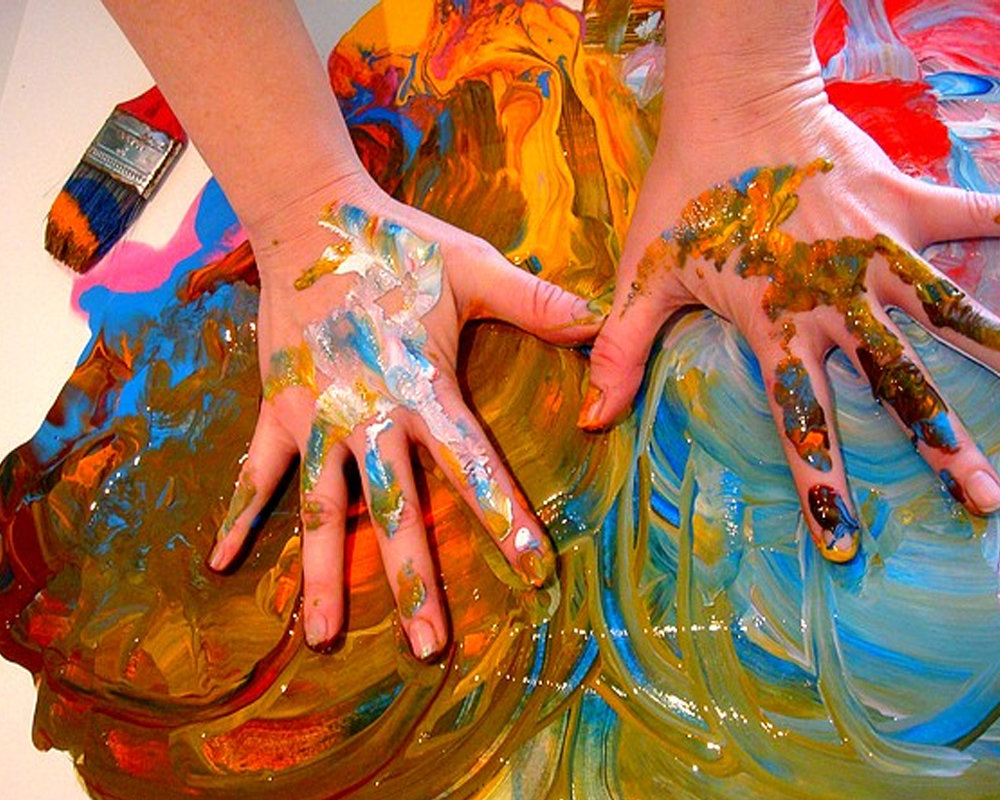 Пример: клиентка, встретившись с сложным для нее переживанием, выражает его в листе… Ее способ состоит в выливании на лист банки белой гуаши и размазывания… Затем берется банка черной гуаши… И очень важно, что все отвращение к этому «грязному» цвету выражается и проживается через руки… Минут 30 она была включена в этот процесс — сказочная возможность встретиться с ранними — очень телесными переживаниями… Отмечу глубину и катарсичность переживания, которое я наблюдал.